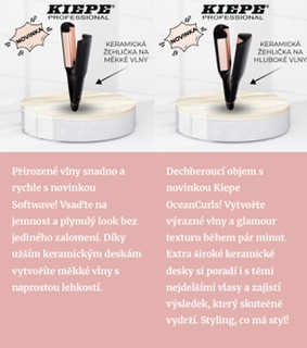 Kiepe Oceancurls Softwave je profesionální žehlička na měkké vlny s keramickými deskami o velikosti 104×40 mm. Je navržena pro rychlé vytvoření přirozených vln bez zalamování a bez zbytečné námahy. Technologie PTC poskytuje rychlý náběh teploty a rovnoměrné zahřívání, což zaručuje stabilní výkon po celou dobu stylingu.
